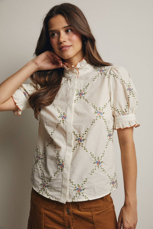 Embroidered Ruffle Collar Cotton Blouse- preorder
