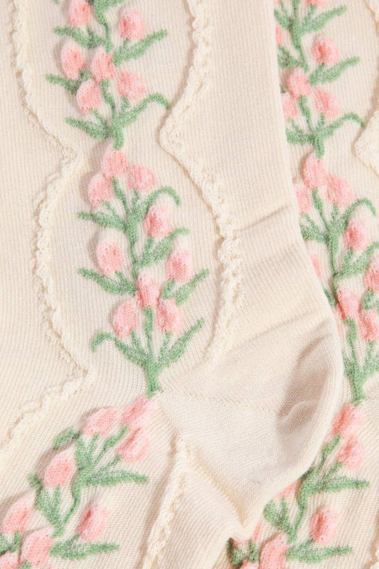 Floral Tulip Vine Embroidered Socks