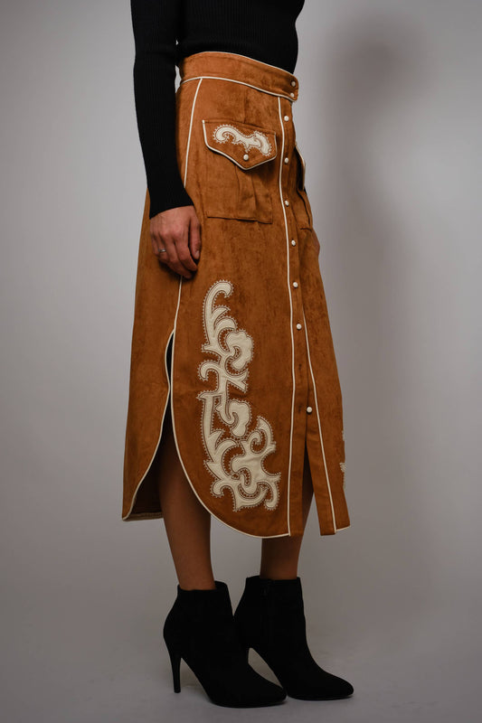 Suede Patch Midi Skirt