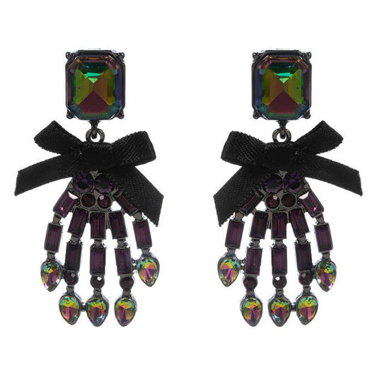 Bow Accent Glass Stone Skeleton Hand Dangle Earrings