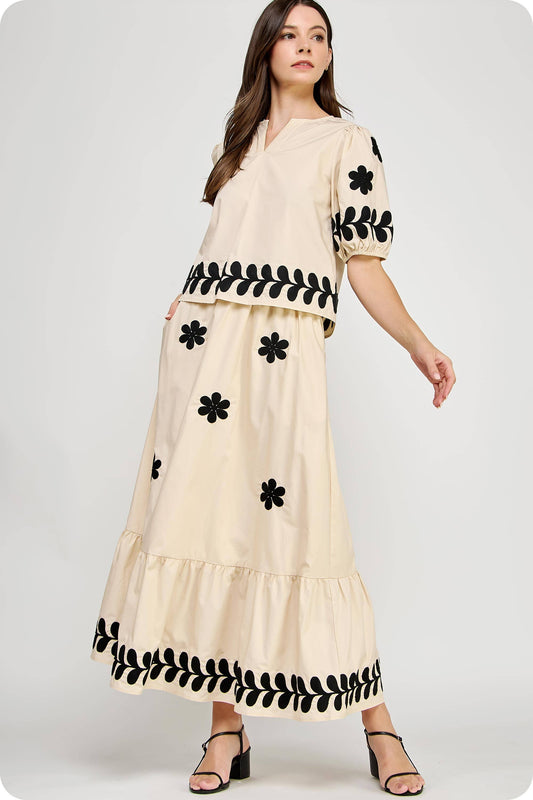 EMBROIDERED TANK AND MIDI SKIRT SET