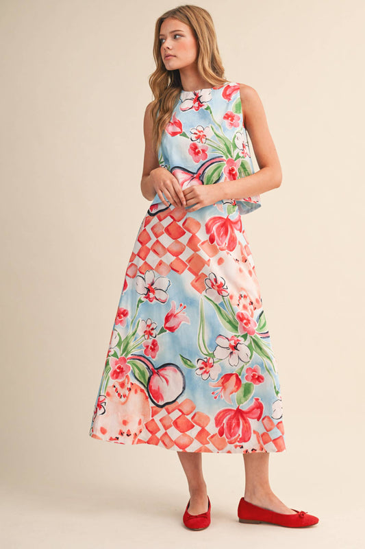 EXCLUSIVE FLORAL PRINT CROP TANK AND MIDI SKIRT SET MPST4719