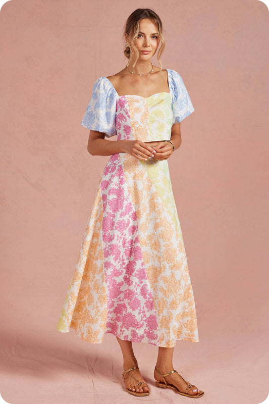 Floral Cut-Out Embroidery Twill Midi dress