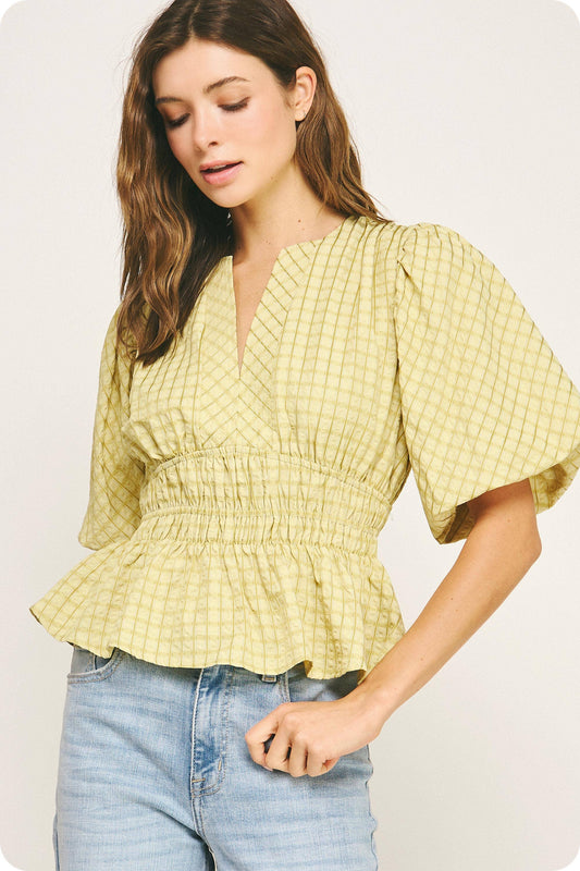 Checkered Puff Sleeve Blouse