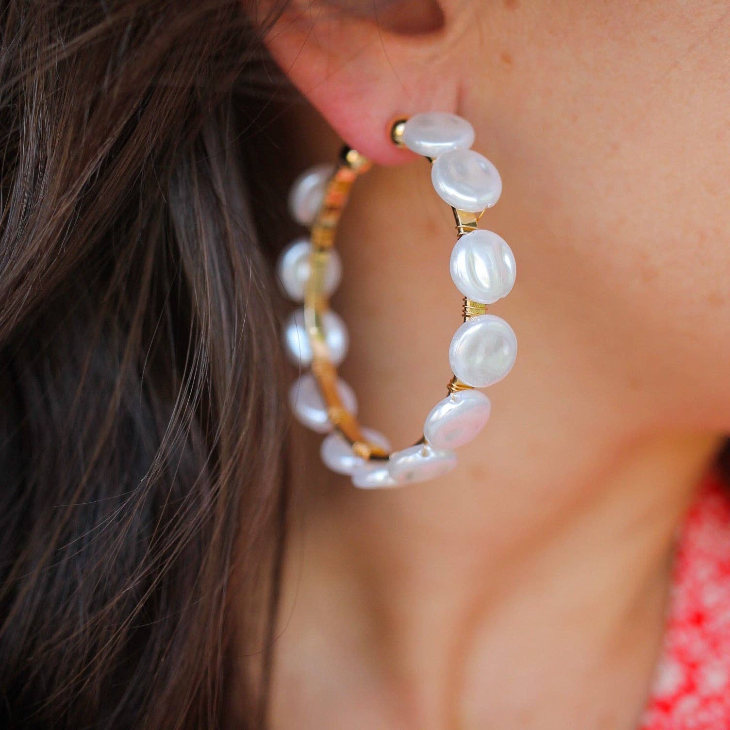 These beautiful, sparkling coin pearl hoops are a stunning addition to your jewelry collection. You can be sure that wherever you go - whether it's Sunday brunch or date night - people will take notice of your glamorous style.