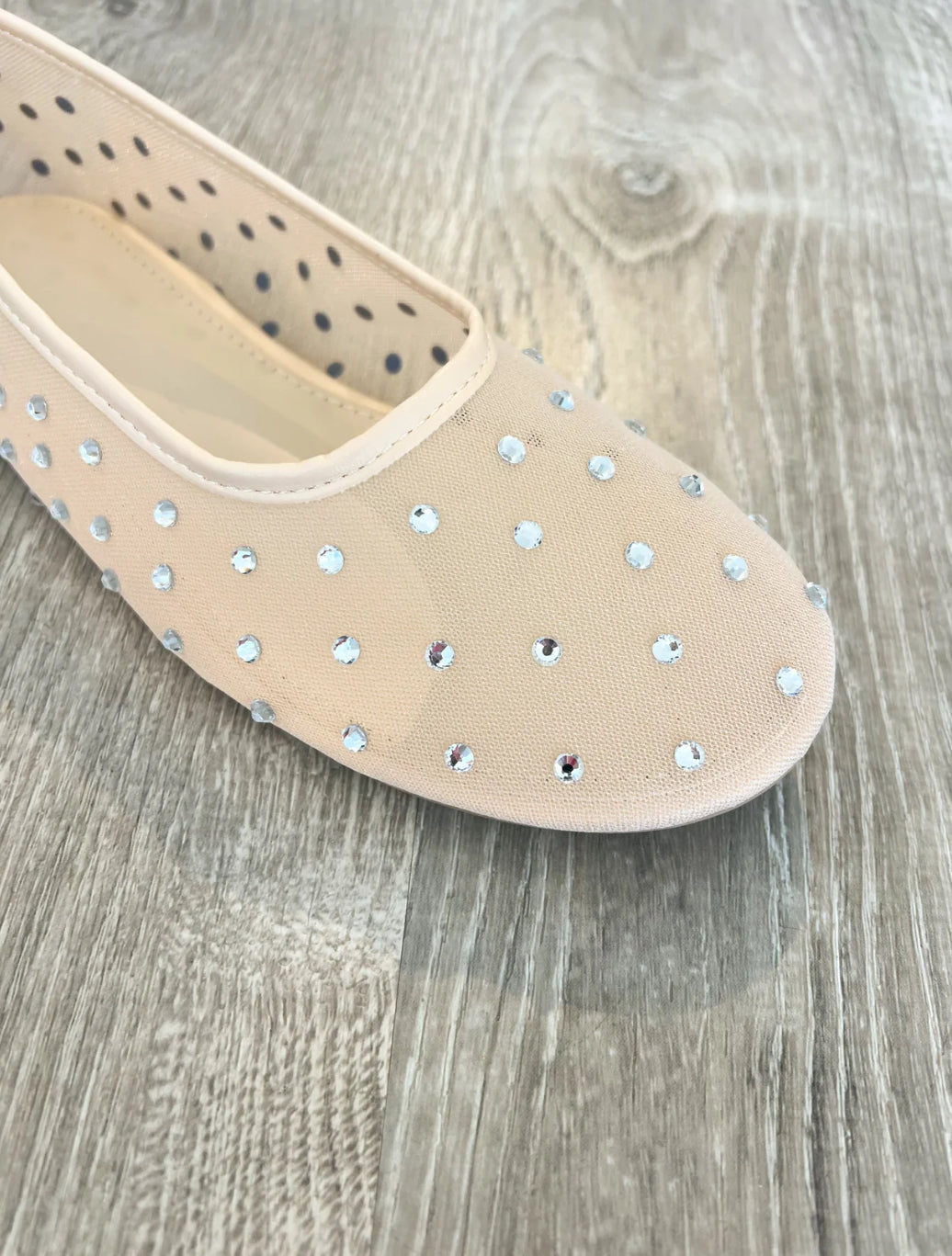 Mesh upper studded with rhinestones. Add some flair to all of your casual outfits!