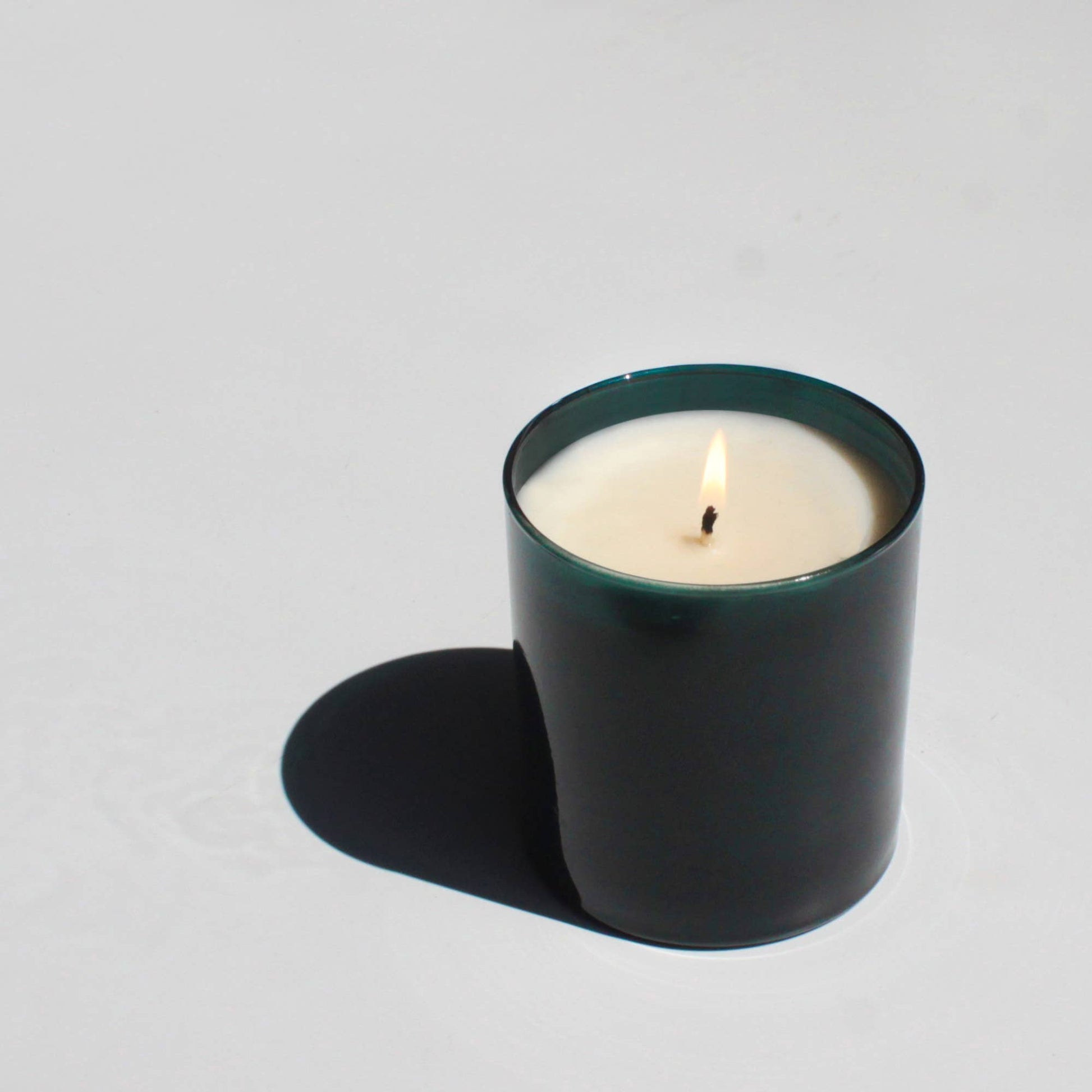 -9 oz. soy candle in a colorful translucent deep teal glass tumbler, packaged in a matching box.